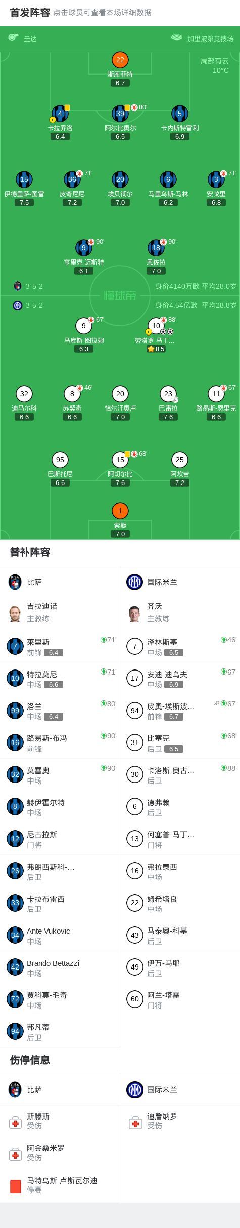 半场:国米0-0闷平比萨,劳塔罗、皮奇尼尼造险